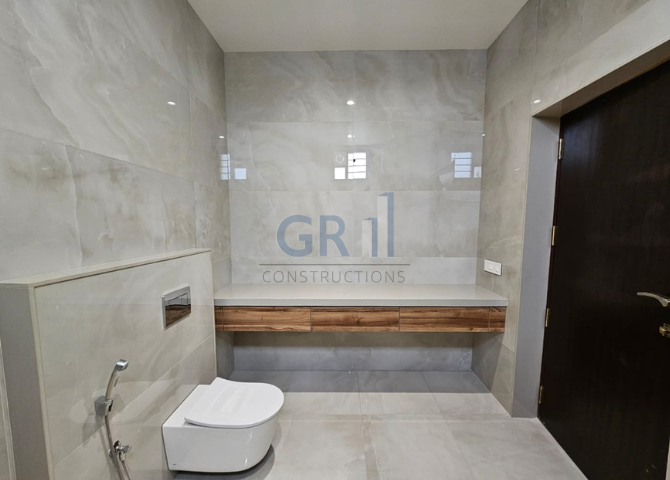 - Wall Tiles : Upto Ceiling (Full Height). Size 2’x2′ Vitrified Tile. Upto 50/Sqft. 1 Colour for 2 Bathrooms